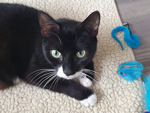 Juni has a quiet charm and would thrive in a peaceful home where she can enjoy cuddles, cozy naps, and treats—without the stress of raising little ones! She’s not dog-tested, so she wouldn’t suit homes with boisterous or dominant dogs, but she could get along with other cats given a slow and gentle introduction.